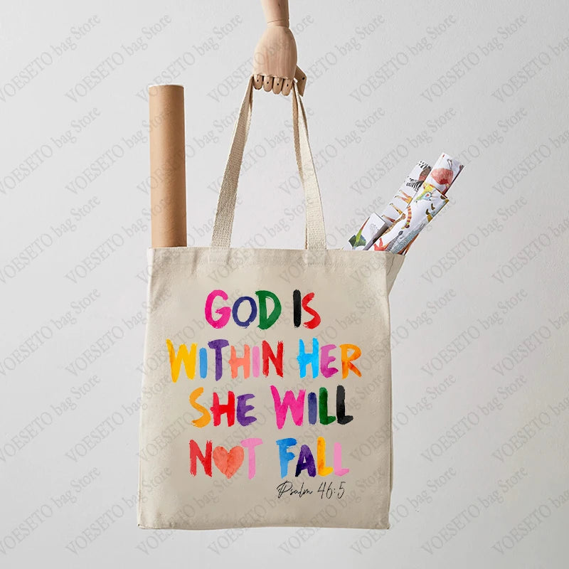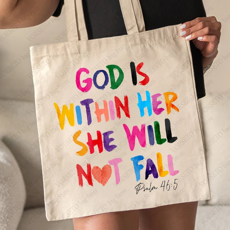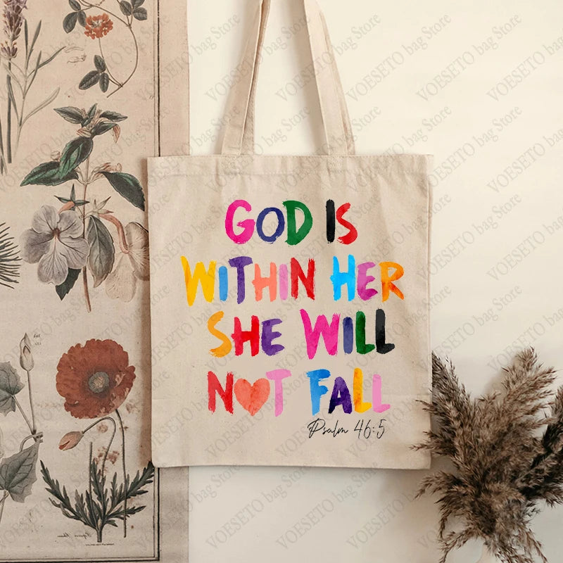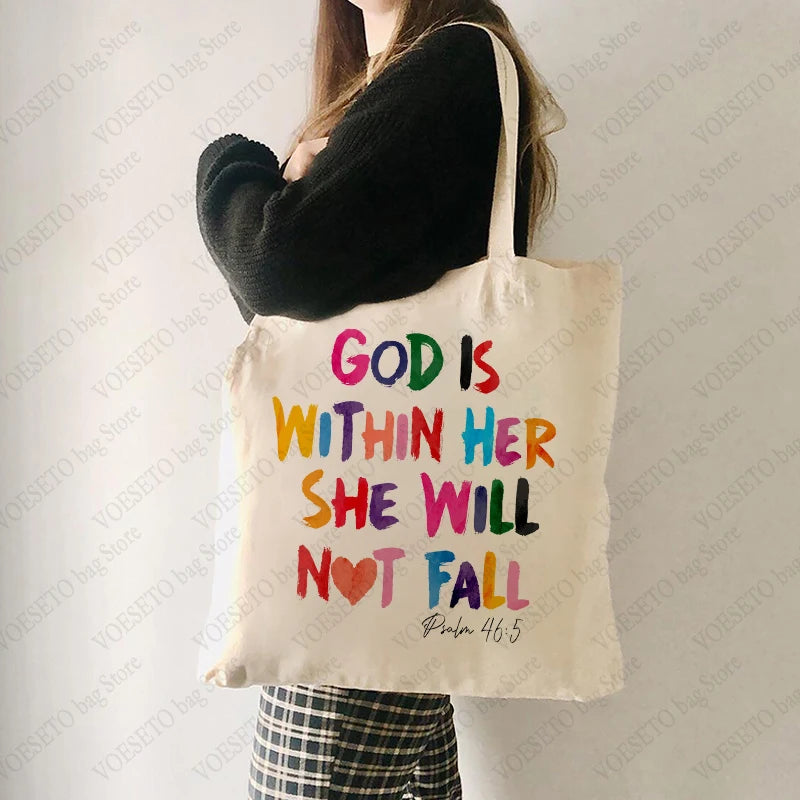 God Is Within Her She Will Not Fall Pattern Tote Bag