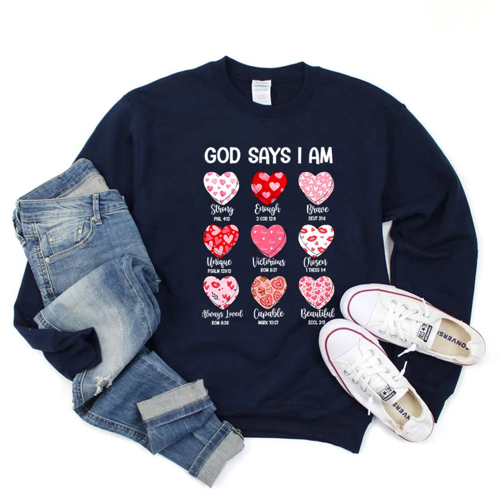 God Says I Am Valentine Sweatshirt Jesus Valentine Hoodie Christian Valentine Sweater Valentine Bible Verse Crewneck Sweatshirts