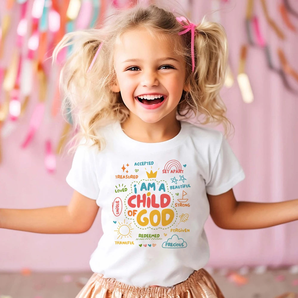 I Am A Child of God Printed Kids Shirt Summer T-shirt Tops for Children Boys Girls Short Sleeve Tshirt Funny Toddler Clothes Tee
