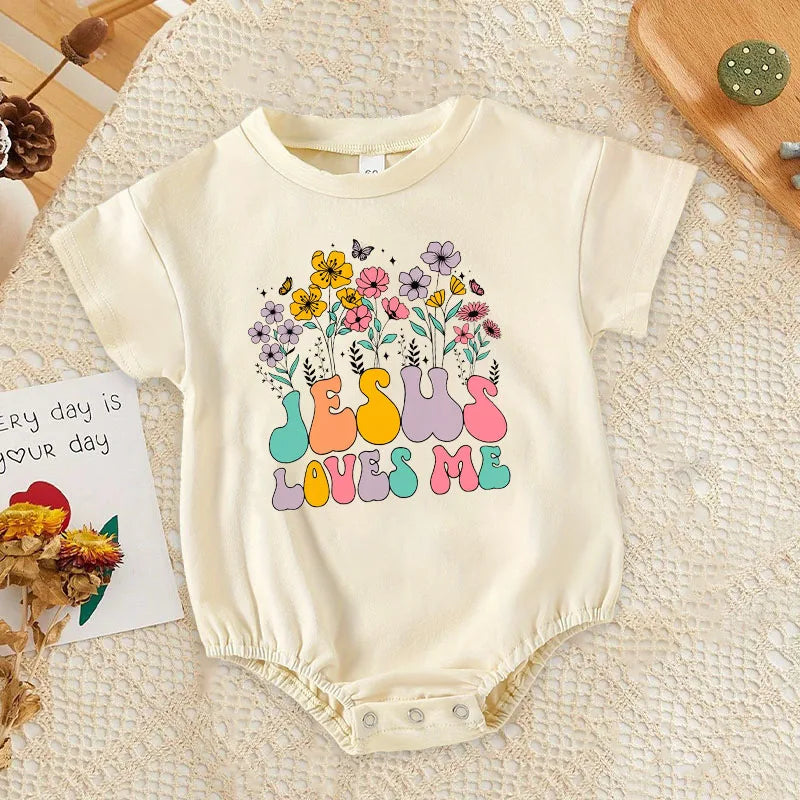 Jesus Love Me Flower Printed Baby Onesie Bodysuit