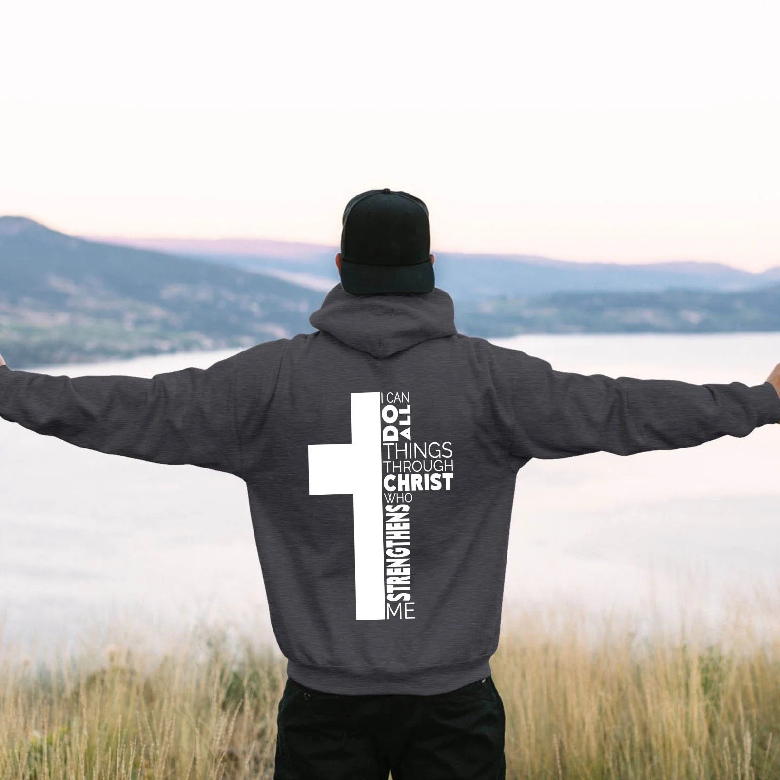 Male Long Sleeve Hooded Sweatshirt Solid Color Back Print Sweatshirt